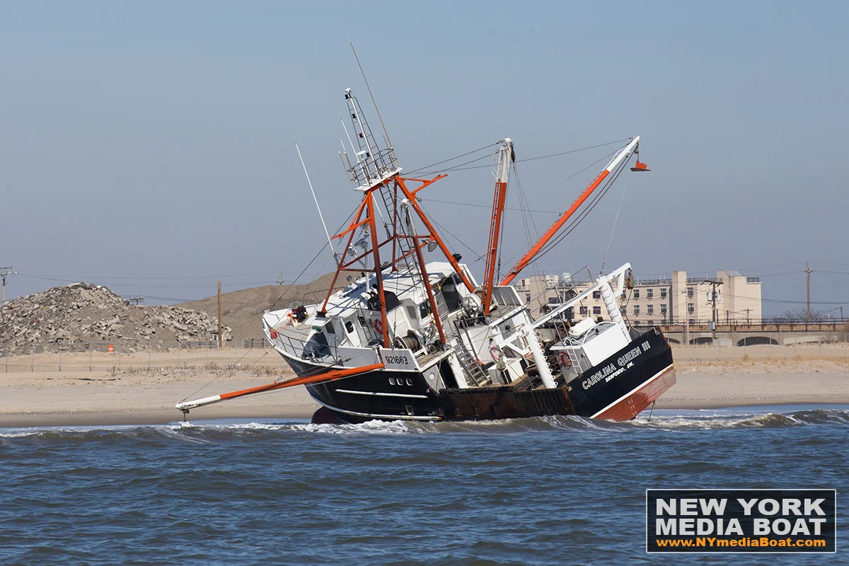 With her shrimp-colored outriggers and a home port of Seaford, Va., it wasn’t hard to wonder what a boat like Carolina Queen III was doing so far up north when she ran aground in a storm near Rockaway Inlet on Long Island last week.