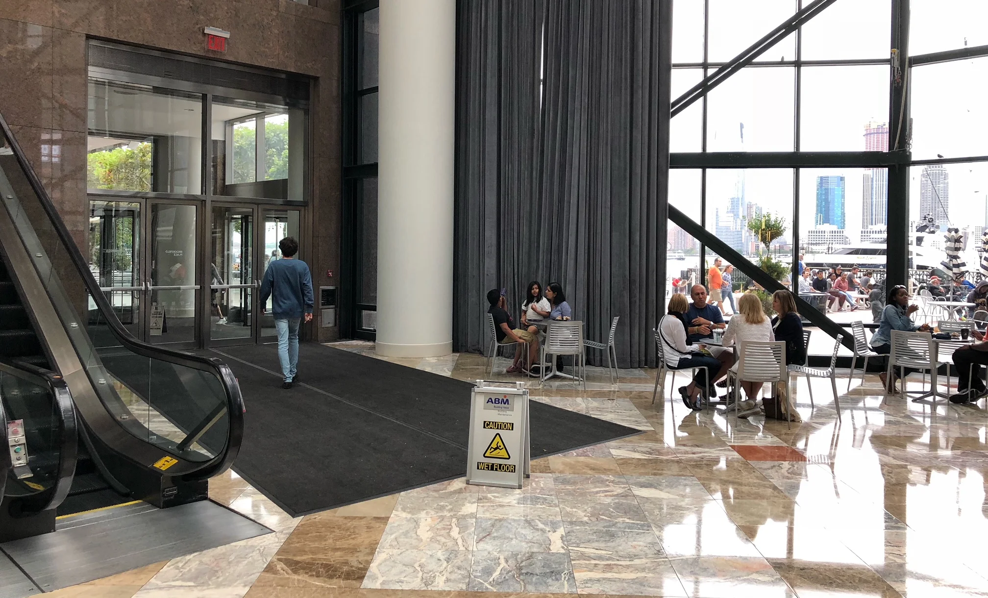 It’s about a five-minute walk from the western exit of the 1 train to the NYMB dock in North Cove Marina. Here’s a little photo-tour of how to get there: through the Westfield shopping center, into Brookfield Place, and to the marina.